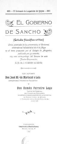 Título: El gobierno de Sancho : (estudio filosófico-crítico) / sus autores, José Mª de Mariscal y Luis y Ramón Ferreiro Lago