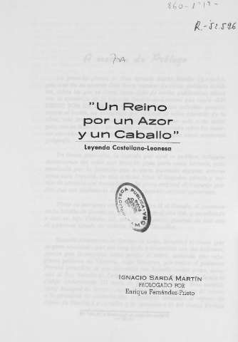 Título: "Un reino por un azor y un caballo" : leyenda castellano-leonesa / Ignacio Sardá Martín ; prologado por Enrique Fernández Prieto