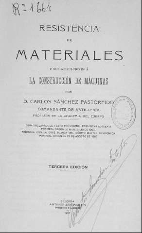 Título: Resistencia de materiales y sus aplicaciones a la construcción de máquinas / por Carlos Sánchez Pastorfido