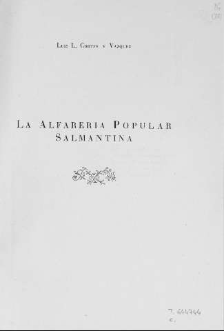 Título: La alfarería popular salmantina / Luis L. Cortés y Vázquez