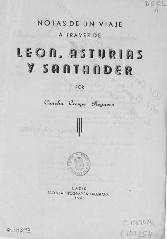 Título: Notas de un viaje a través de León, Asturias y Santander / por Concha Crespo Reguero