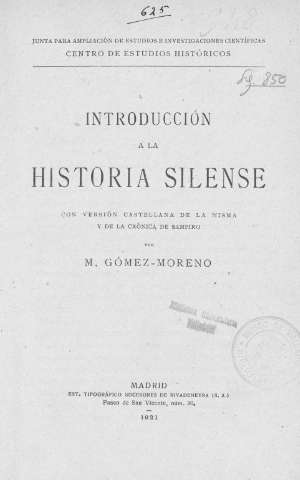 Título: Introducción a la Historia Silense / con versión castellana de la misma y de la Crónica de Sampiro por M. Gómez-Moreno