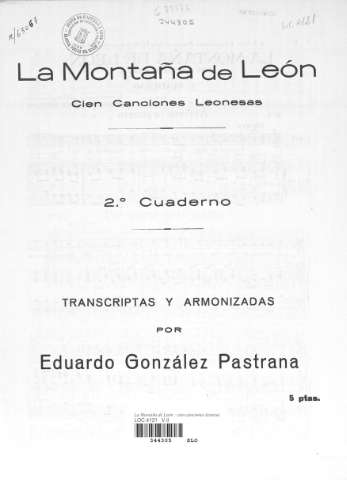 Título: La Montaña de León [Música impresa] / cien canciones leonesas armonizadas por el P. Eduardo González Pastrana
