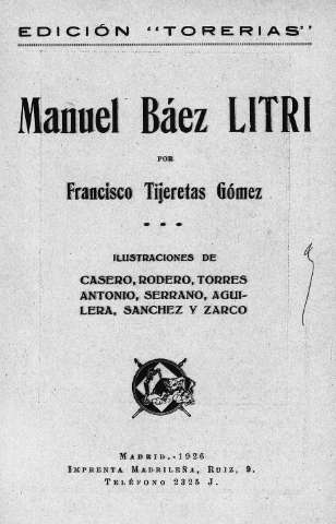 Título: Manuel Báez Litri / por Francisco Tijeretas Gómez ; ilustraciones de Casero ... [et .al.]