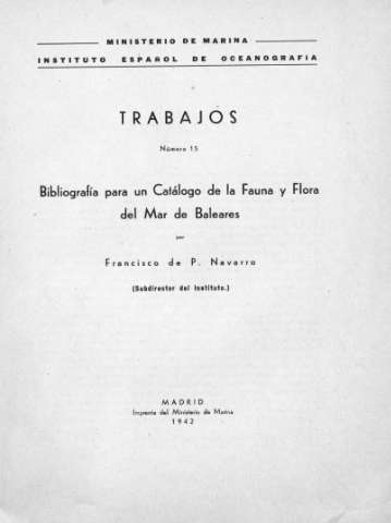 Título: Bibliografía para un catálogo de la fauna y flora del mar de Baleares / por Francisco de P. Navarro