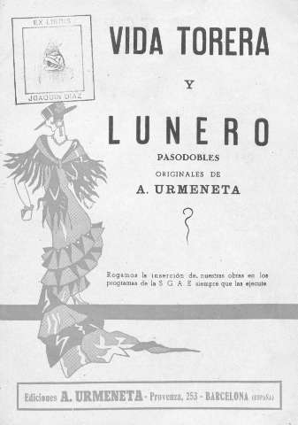 Título: Vida torera [Música imrpresa]; Lunero : pasodobles / originales de A. Urmeneta