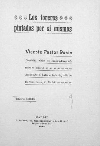 Título: Los toreros pintados por sí mismos / Vicente Pastor Durán