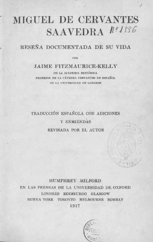 Título: Miguel de Cervantes Saavedra : reseña documentada de su vida / por Jaime Fitzmaurice-Kelly ; traducción española con adiciones y enmiendas revisada por el autor.