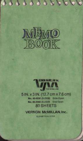 Cuaderno manuscrito de apuntes y notas dispares durante un viaje a Estados Unidos: [notas], [empieza:] "Se aburriría en Vassar...", [empieza:] "Sueño de Rafael...", "Vuelo de N.Y a Kansas, 23 oct. 85", "4 dic. 1985", [lista de la compra, tareas pendientes, notas, citas en inglés], [empieza:] "La cabeza en su sitio, Calila", "De Kansas a N. York en Avión, 26 oct. 85", "Vassar 21 nov 85, "Epílogo. Cambios", "Pesimismo", [notas de algunas lecturas], "Nada". En el vuelto de la cubierta, recorte de periódico con la noticia de la muerte de Ruth Gordon.