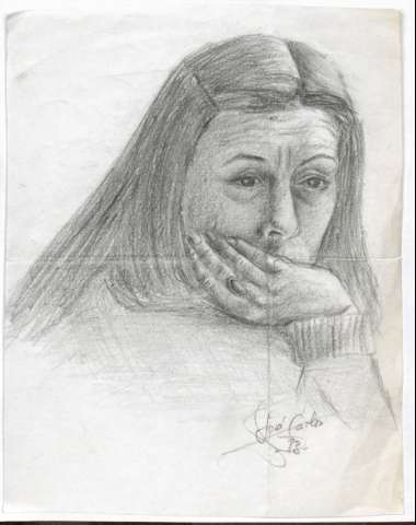 Retrato en media cuartilla a lápiz de Carmen Martín Gaite, firmado "José Carlos, 83"