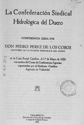 Título: La confederación Sindical Hidrológica del Duero conferencia / leída por Pedro Pérez de los Cobos