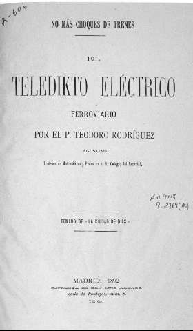 Título: El Teledikto electrico ferroviario / Teodoro Rodriguez