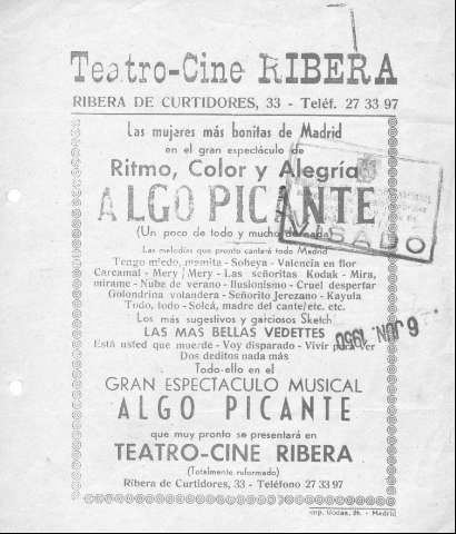 Título: Teatro-Cine Ribera : gran espectáculo musical "Algo Picante"