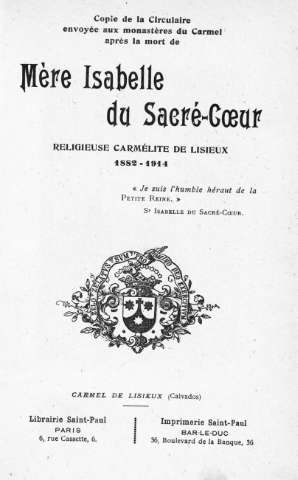 Título: Copie de la Circulaire envoyée aux monstères du Carmel après la mort de Mère Isabelle du Sacré-Coeur : religieuse carmélite de Lisieux 1882-1914 / [Agnès de Jesús]