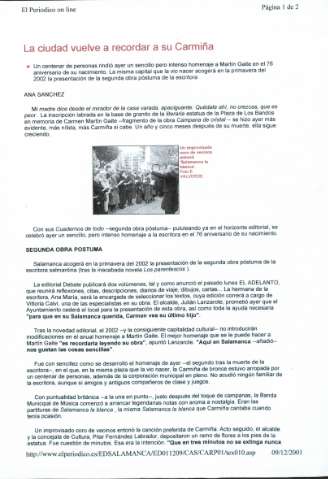 Artículos de prensa sobre el homenaje celebrado en Salamanca con motivo del 76 cumpleaños de Carmen Martín Gaite