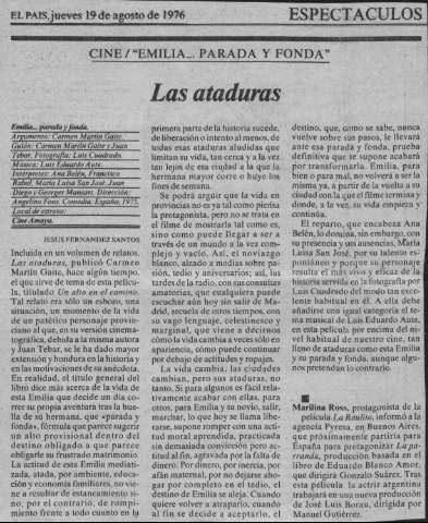 Artículo publicado en El País, el 19 de agosto de 1976. La película se basa en el relato de Carmen Martín Gaite "Un alto en el camino" incluido en el libro de relatos "Las ataduras"
