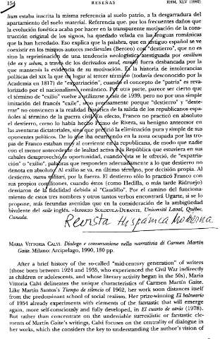 Reseña del libro de Maria Vittoria Calvi: "Dialogo e conversazione nella narrativia di Carmen Martín Gaite".